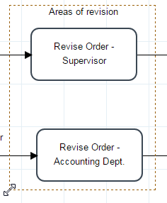 This artifact simply groups elements of the Process Map and provides a visual mechanism that highlights certain areas of the design. To add this element, drag and drop it in the Process Map.