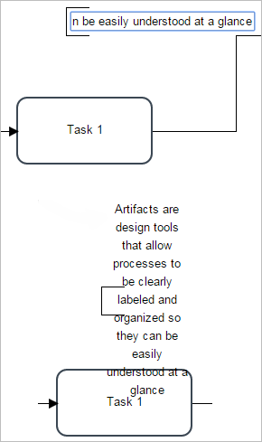 But there is an option to adjust the "Text Annotation" so it does not look like the image above. Click on the annotation and green dots will appear to widen the annotation. Expand it as long as needed, depending on the text of the annotation. Then move the "Text Annotation" to wherever it looks better for the process.