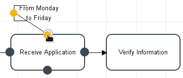 Moreover, the text annotation object can be connected to a specific object on the diagram with an association. Hover the mouse over the annotation until a yellow dot appears on the left-hand side. Click on the yellow dot and drag it toward another object on the diagram while holding down on the mouse button.