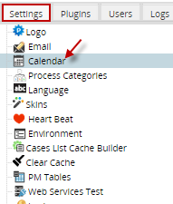 Note: Take into consideration that as of version 3.0.1.8., users must have the PM_SETUP_CALENDAR permission assigned to their role to access the ADMIN > Settings > Calendar option.