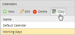 - Choose the calendar to be copied from the list of calendars and click on Copy: