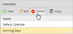 - Select a calendar from the list of calendars then click on the Delete button.