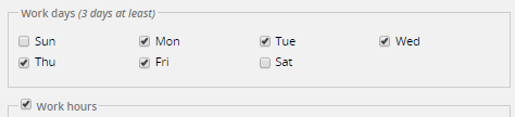 Work Days: The days of the week to be included in the calendar can be selected here. To enable the checkboxes to select the days of the week, the option Work Hours must be unchecked: