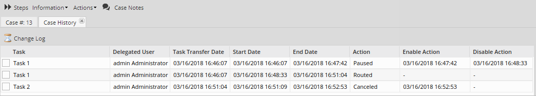 Click on the Case History option to open a new tab with the list of tasks routed or still in progress.