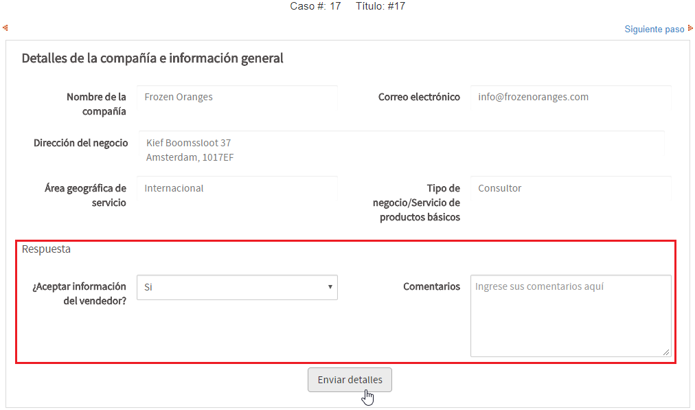 msgid "Response" msgstr "Respuesta" msgid "Accept Vendor Info?" msgstr "¿Aceptar información del vendedor?" msgid "Yes" msgstr "Si" msgid "No" msgstr "No" msgid "Comments" msgstr "Comentarios" msgid "Enter your comments here" msgstr "Ingrese sus comentarios aquí"