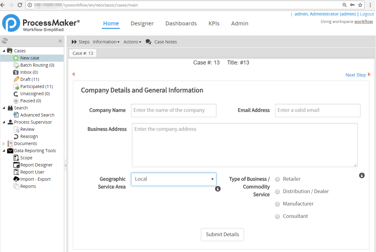 http://<domain>/sys<workflow>/<lang>/<skin>/cases/main