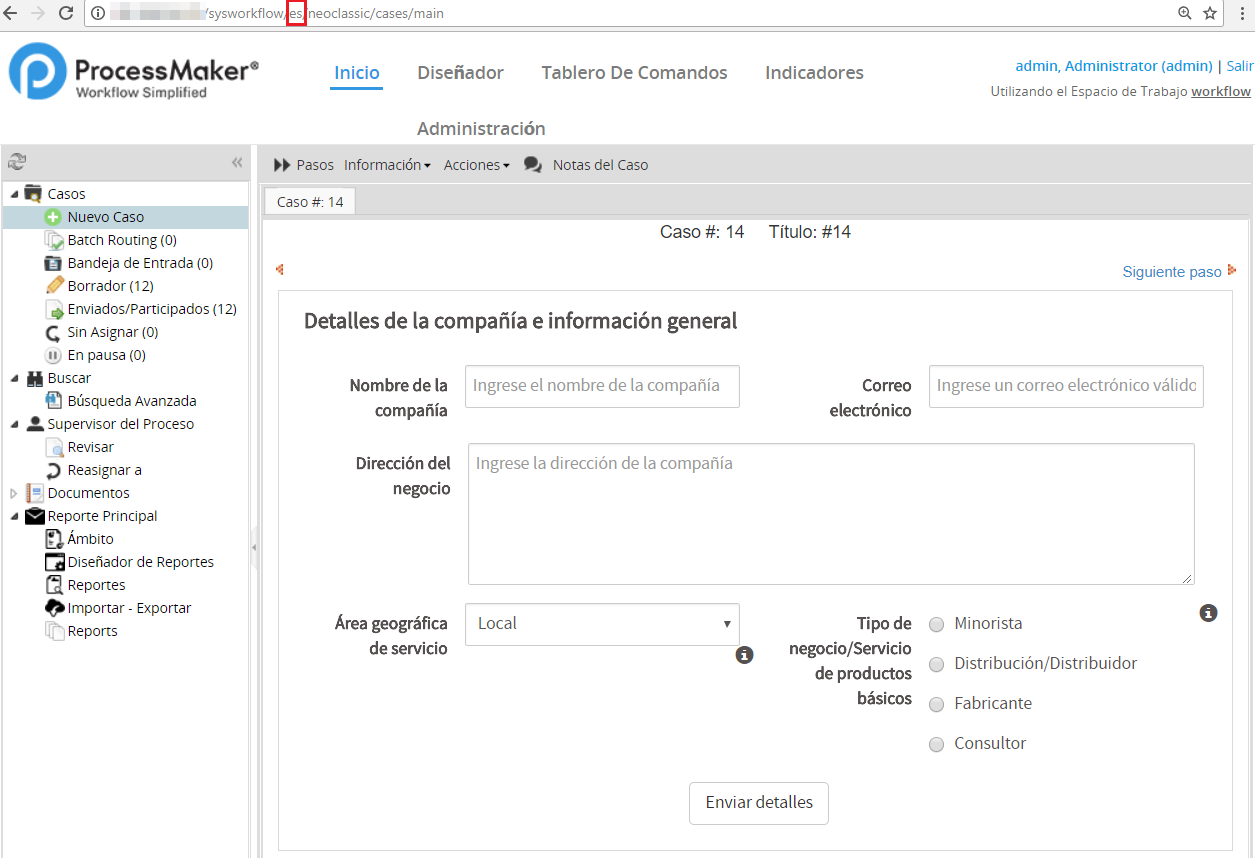 http://<domain>/sysworkflow/es/neoclassic/cases/main
