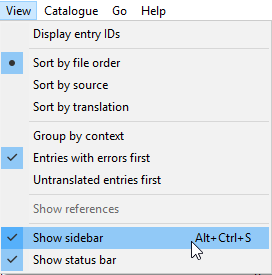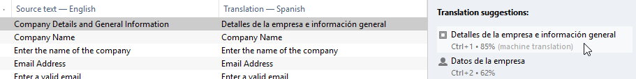 • 13. Select a sentence to translate from English to the target language. (in this example into Spanish). Suggestions appear in the Translation suggestions section. If the translations suggested are not displayed, go to View > Show sidebar menu, or press Alt+Ctrl+S keys.