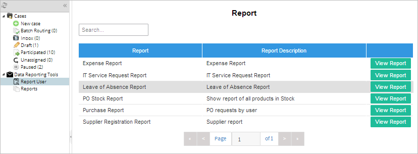 The Leave of Absence report shows all requests that have been completed, requests in draft and requests that are in progress. This report is generated using ProcessMaker's Data Reporting Tools plugin.