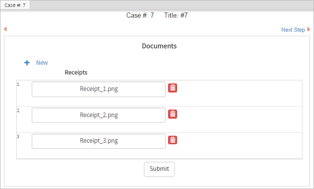 For example, a grid whose variable is named "receipts" is submitted and it has three rows with a file field named "receiptFile", then the following information might be stored in the APP_DOCUMENT table about the three files: