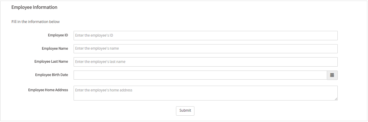 In the Dynaform designer, the main container of the form is represented by the light gray canvas where the rows are added and the design of the Dynaform is built. Forms inside the designer depend on properties that may define the entire behavior of the Dynaform. It is inside forms that JavaScript code and External Libraries can be added inside forms in order to enable extra functionality for the current Dynaform. Also, inside the properties of the form, the "Language" property allows selecting the translations of the form content, after uploading custom /po files to it. This functionality is fully explained at the following page: Dynaform Multi-language Support. Finally, the view mode of the form can affect the way elements will be displayed.