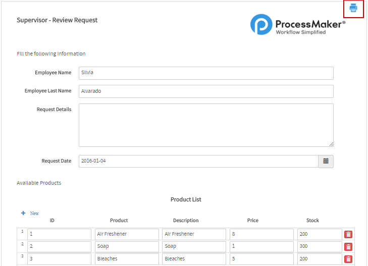 | Print Dynaform | Check this option to have the ability to print the Dynaform. This property also adds a printer icon at the top right side of the Dynaform when it is rendered. Available Version: Available from 3.0.1.7 |