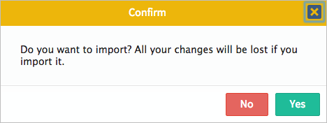 When a dynaform is imported over an existing dynaform, all the configuration of the existing dynaform is overwritten. Therefore, an alert message is displayed at the beginning saying that all the current dynaform is going to be replaced by the new one.