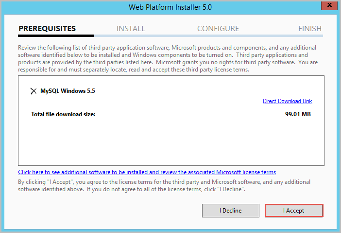 Click on I Accept in the next window with the details of the installation and the product will be downloaded and installed in the local server.