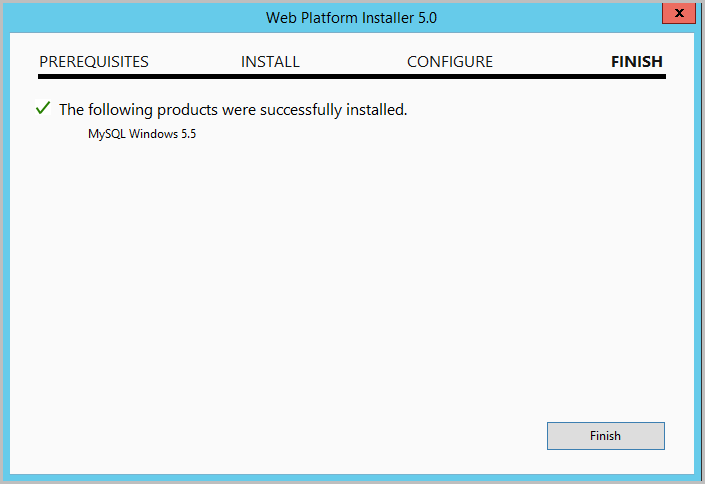 Once done, click on Finish and close the "Web Platform Installer".