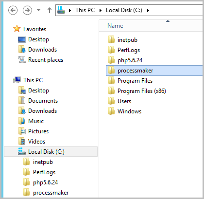 Create a new folder named "processmaker" in the disk C:\ and decompress the content of the .tar.gz inside.