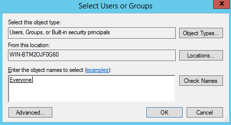 Enter the name "Everyone" in the "Select Users or Groups" window that is opened next.