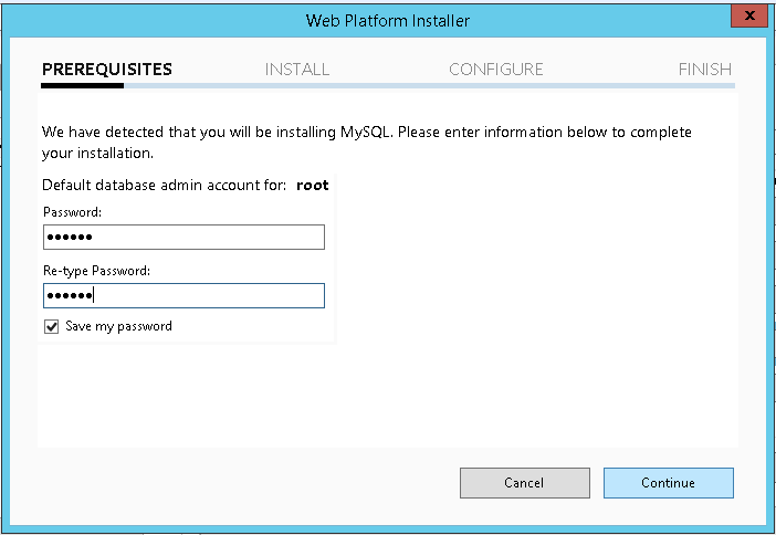 Set the password for the database in the window that is displayed and click on Continue.