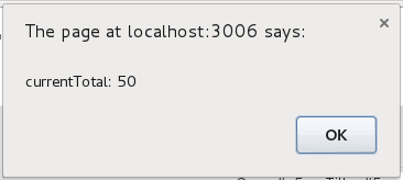 A message can also be displayed to the user. For example, to see the value of a hidden field with the ID "currentTotal":