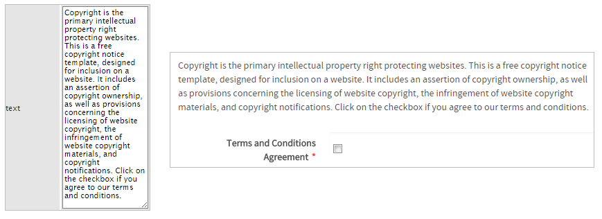 The final property in this control is the "text" property which will become its content. For example, try adding text similar to a "Terms and Conditions" policy. Also, a checkbox can be added so the user can click on it if she/he agrees with the conditions read in the "label" control.