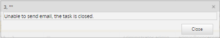 - Resend Email: By selecting an email from the list and clicking on this button at the top left-hand side of the list, the email will be resent. If the task is closed the following message will display: