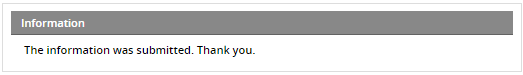 Fill out the form and click on Submit, and the information send will be confirmed with the following message: