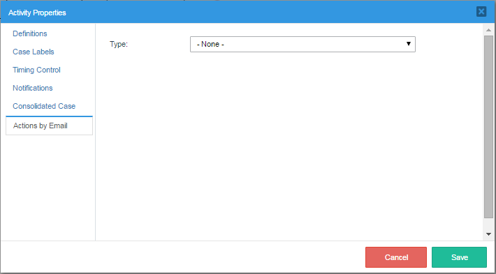Note: This option is not shown in last versions of ProcessMaker. It is only shown when the Actions by Email plugin is enabled. This is a Known Issue that will be solved in next versions. Thank you for your understanding.