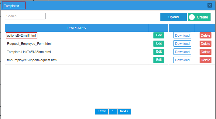 It is possible to customize the template by adding case variables and additional information related with the Dynaform, process, case, etc. In order to find out the actionsByEmail.html template go to Templates option, the template will be listed: