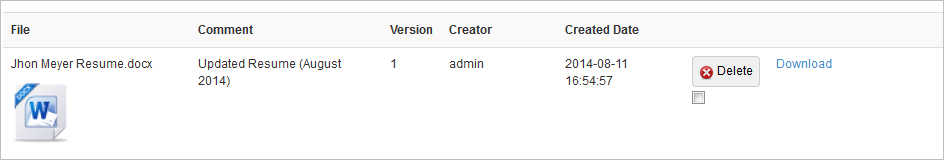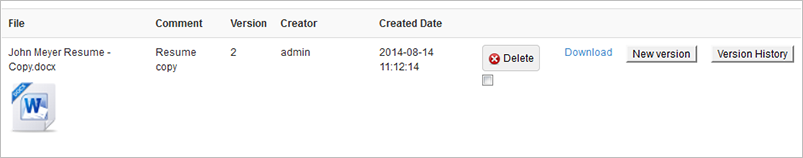 If versioning is enabled, the "New Version" button will be displayed next to each document after it has been uploaded: