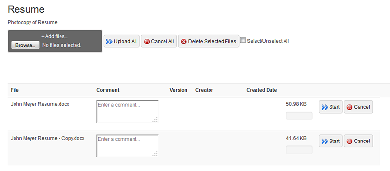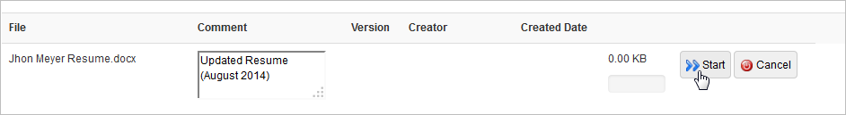 In the Comment field, text can be entered to provide more information about the file or it can be left blank. The Version, Creator and Created Date will be filled as soon as the file(s) are uploaded.