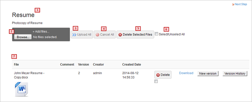 • Versioning If Input Document versioning has been enabled, it will be possible to upload different versions of the same document and review the history of those documents. This will be detailed ahead.