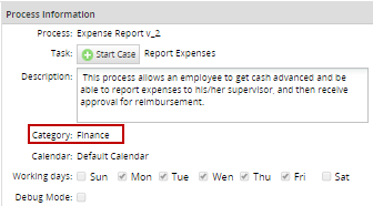 The category will be displayed on the Process Information in the "Category" field when a case is initiated: