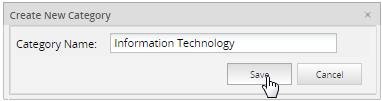 Create a new category by clicking on the "New" button, on the new window enter the name of the new category and then click on the "Save" button: