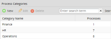 once saved this new category will be displayed on the process categories list as seen in the image below: