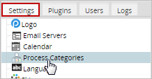Note: Take into consideration that from version 3.0.1.8. on, users must have the PM_SETUP_PROCESS_CATEGORIES permission assigned to their role to access the ADMIN > Settings > Process Categories option.