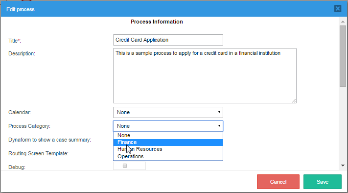 Apply an existing category to a process by right-clicking on the process map and go to Edit Process and a new window will appear which will display all the categories created. Select one from the dropdown and that will now be the category of the process, take the image below for guidance: