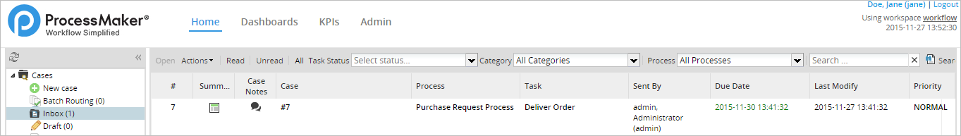 Once logged in as Doe, Jane (jane), the case just reassigned will appear in her inbox.