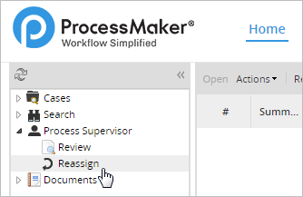 All process supervisors can take over cases by going to HOME > Process Supervisors. The Process Supervisors tab may have one or two options (depending on the permissions assigned), which are Review and Reassign. In the following sections, there will be an explanation of how to assign a supervisor to a process and see what a supervisor can do from their point of view.