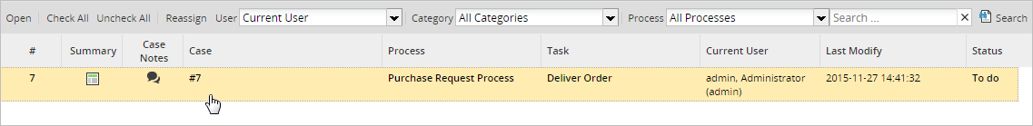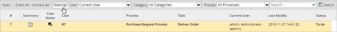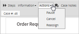• Actions: where the supervisor can pause and cancel. Supervisor users can reassign a case only if the PM_REASSIGNCASE permission was added to their role.