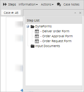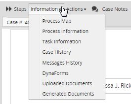 • Information: lists all information a supervisor can check, like the status of the process map, the process information, the task information, the case history, the messages history, DynaForms, uploaded and generated documents.