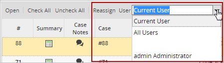 A list of all the cases available for reassignment will be displayed; click on one of the cases from the list and it will be marked for reassignment.