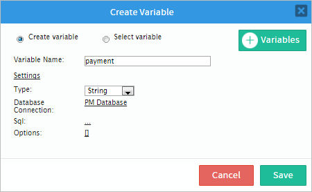 Immediately after adding the control the Create Variable window will appear. For this example create a variable named "payment" and use the image below as guidance to add more settings to the control.