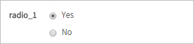 • id Set by default as radio000000000X where "X" represents the corresponding numbering of the control in the design. This numbering starts in 1. After a variable is related to this control, the ID changes to the name of the variable, nevertheless it is possible to set a new ID to work with the control.