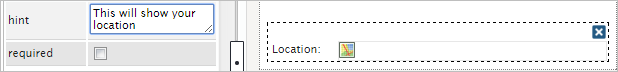 Hint Used to show help when the field is rendered. It is shown when the pointer of the mouse is hovered over the ? icon.