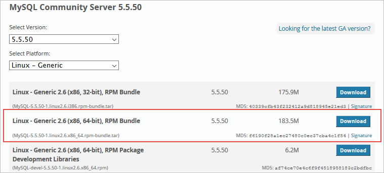 For instance, at the moment, the latest current version is MySQL 5.5.50:
