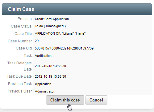 A summary window will be displayed. Click on Claim this Case to open it.