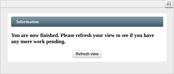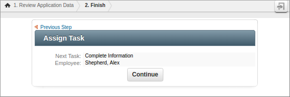 - Once the user completes the assigned task, a dialog box will appear indicating that the case is routing to the next task or the process has completed.