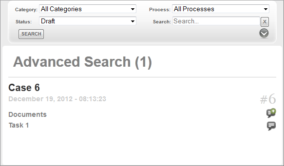 Once the search is configured, click on the Search button. For example, when searching by Draft status: