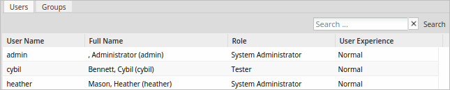 Click on the User Experience option in the sidebar to display a list of users and their user experience setting: