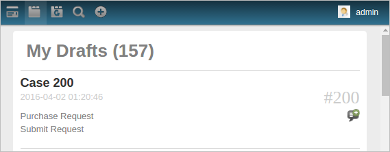 Shows all the incoming cases. This is useful because users can choose to only see cases that require further action. By clicking on the name of the Dynaform, the next step will be displayed allowing users to continue the case.